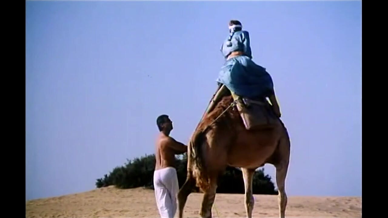 A group of adventurous holidaymakers go on a tour through the desert in a jeep.